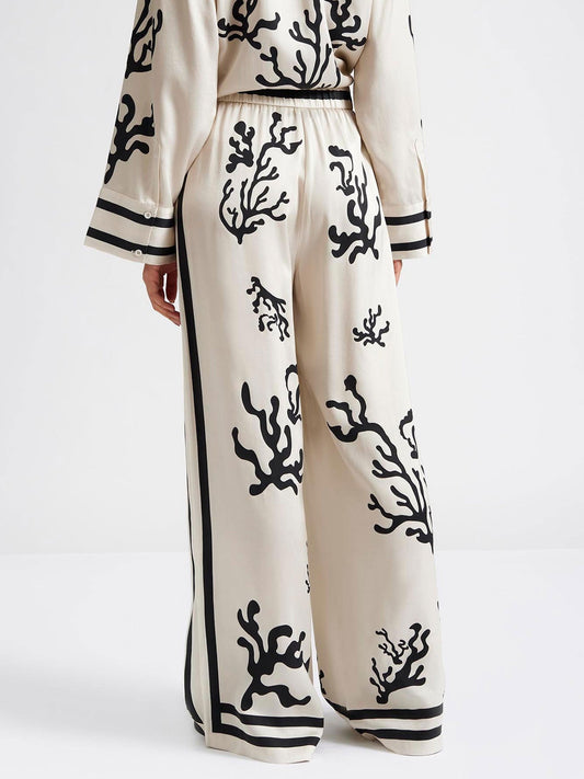 Black Coral Print Wide-Leg Pants