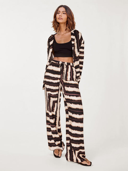 Bold Stripe Print Wide-Leg Pants