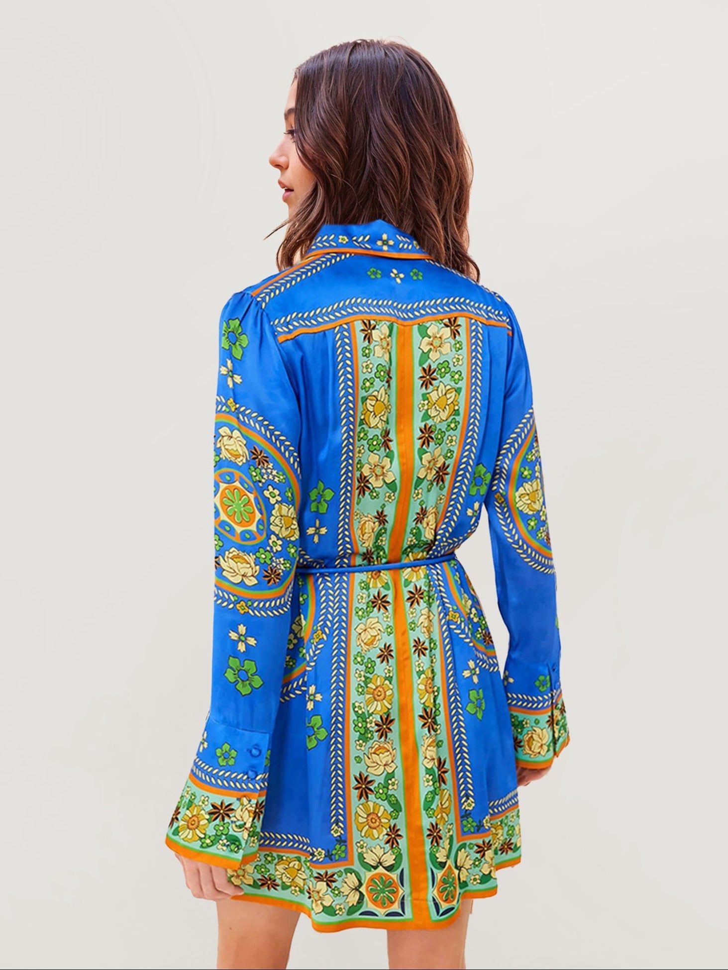 Add a pop of color to your wardrobe with the Bohemian Mini Dress with Belt. This vibrant dress features a playful design and a belted waist, perfect for summer outings or relaxed beach days.