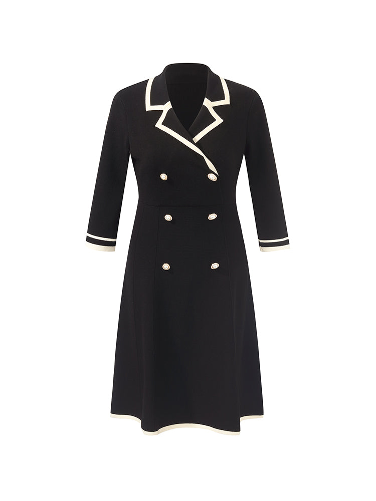 The A-line silhouette and high-waisted design elongate the leg line and accentuate the waist, suitable for various body types. The suit collar with color-blocking highlights a retro trendy vibe. The exquisite pearl buttons add to its unparalleled elegance. This dress can meet the demands of both daily wear and outings. This dress runs large, we suggest choosing smaller size.